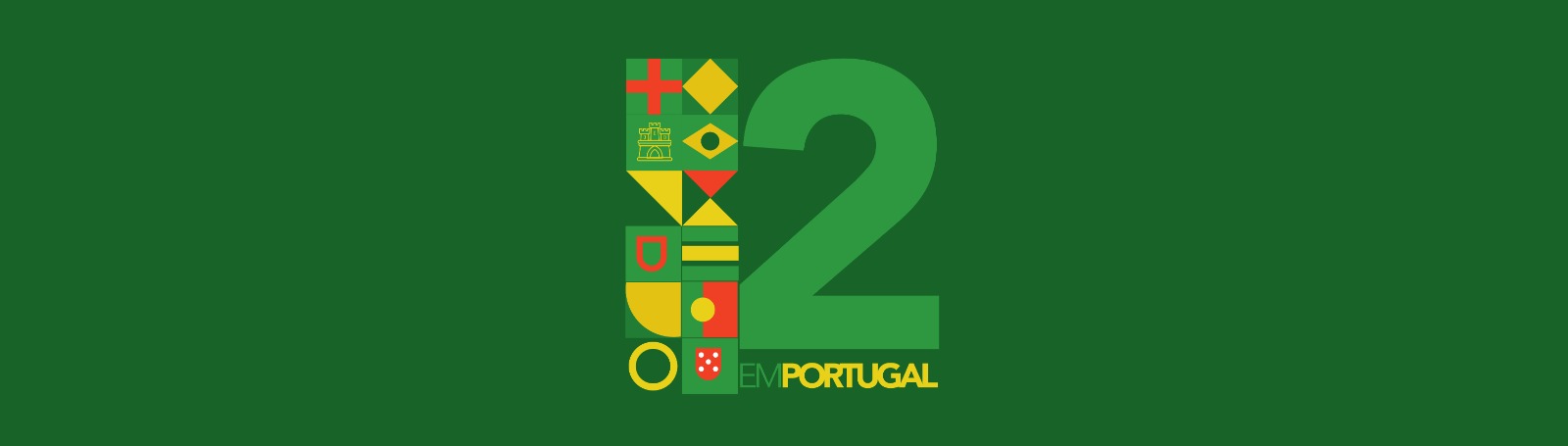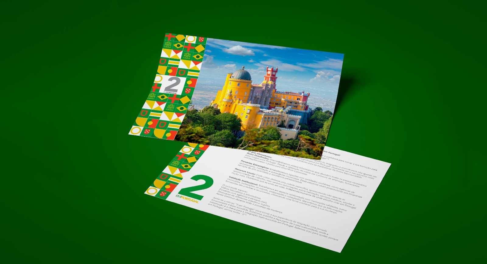 O logotipo do projeto “2 em Portugal” foi criado para representar a ligação entre Brasil e Portugal e reforçar a missão do canal como apoio prático e cultural aos imigrantes. A identidade visual comunica de forma objetiva aquilo que o projeto oferece.